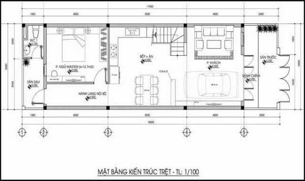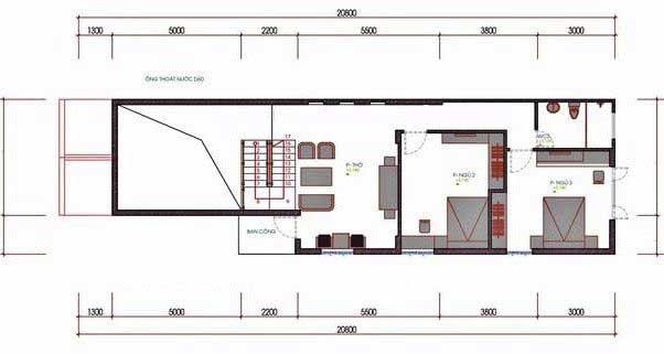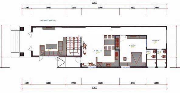 Mặt bằng công năng mẫu nhà ống cấp 4 có gác lửng 5 × 20