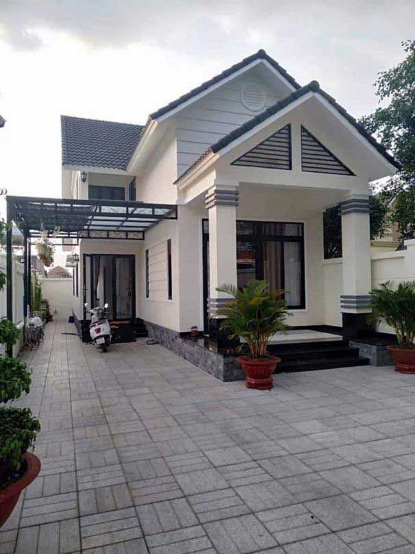 Mẫu nhà cấp 4 có gác lửng sử dụng gam màu trắng làm chủ đạo kết hợp hài hòa với màu xám tạo hiệu ứng đồng nhất cho không gian được thiết kế đặc biệt cửa chính và cửa sổ sử dụng cửa gỗ màu vàng nhạt. nhân phẩm và phẩm giá. Sân trước và bên hông rộng rãi để xe, khu vui chơi thư giãn tạo cảm giác thông thoáng cho ngôi nhà. Ở những vùng nông thôn rộng lớn thì đây là thiết kế kiến trúc mặt tiền không thể bỏ qua.