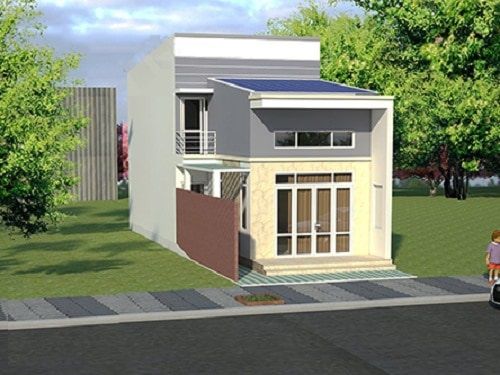 Phối cảnh mặt tiền là bộ mặt chung của ngôi nhà. Kiến trúc sư thật tinh tế và khéo léo khi giảm 5m chiều dài để thiết kế sân trước. Tạo không gian vui chơi, sân phơi sinh hoạt chung cho ngôi nhà. Đồng thời với thiết kế sân trước khá rộng. Hình dáng ngôi nhà sẽ trở nên cân đối hơn, chiều dài bớt sâu hơn. Từ đó, việc bố trí mặt bằng sẽ đơn giản và thuận tiện hơn.