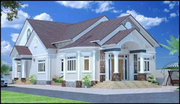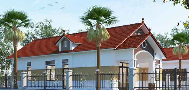 Mẫu thiết kế nhà cấp 4 theo phong cách biệt thự sang trọng chủ đầu tư có gu thẩm mỹ cao và tiềm lực kinh tế cao. Mẫu thiết kế này được xây dựng thành một khuôn viên 12x12m rộng rãi và thoáng mát. Trước nhà là khoảng sân rộng rãi. Ngôi nhà với hệ thống mái thái hình chóp nổi bật bởi màu sắc của mái ngói xanh than. Ngoài không gian chính của ngôi nhà còn có liên kế bên hông phải thiết kế lý tưởng để làm gara giúp ô tô của bạn luôn an toàn trên mọi nẻo đường.
