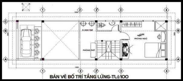 Về cơ bản, phần gác lửng được chia thành 2 khu vực chính. Bên ngoài được thiết kế có phòng thờ, bàn làm việc và nhà vệ sinh. Bên trong là phòng 1 phòng ngủ với không gian rất thoải mái. Nhà vệ sinh được bố trí ở giữa, mục đích chính là tránh đặt trong phòng ngủ và nó sẽ nằm ngay phía trên khu vực bếp bên dưới. Theo phong thủy điều này hoàn toàn không tốt