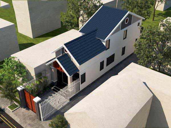 Thiết kế mái độc đáo với màu xanh lam và mái dốc lớn. Giúp ngôi nhà cấp 4 được cân đối, thông thoáng và rộng rãi hơn.