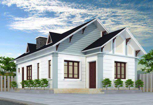 Mẫu nhà này được thiết kế như một kết cấu bê tông cốt thép. Điều này làm tăng giá trị của dự án và thời gian để nó phát huy tác dụng. Mái nhà hoàn toàn bằng bê tông và sau đó được lát gạch. Đó là một ngôi nhà một tầng mang những nét cổ điển của ngôi nhà ngói ba gian truyền thống. Nhưng nó được kết hợp với các tính năng hiện đại. Đặc điểm Cửa mái và ống khói là đặc trưng của các mẫu nhà Châu Âu.