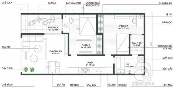 Cùng chiêm ngưỡng mẫu nhà rộng 480 m2 có 2 phòng ngủ vô cùng hiện đại phù hợp với các cặp vợ chồng trẻ hiện nay. Kiểu nhà này là một trong những mẫu nhà mơ ước dành cho các cặp vợ chồng có từ 1 đến 2 con. Với lối thiết kế kiến trúc đơn giản xu hướng nội thất hiện đại là điều vô cùng quan trọng