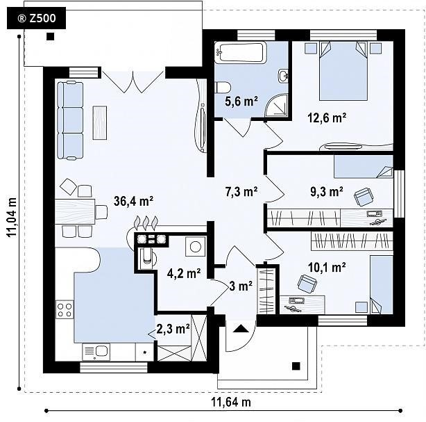 Bản vẽ nhà ống 1 tầng diện tích 5x20m với bố cục sáng tạo dành cho những ai yêu mến sự hiện đại.