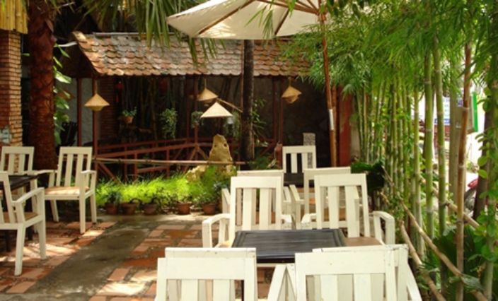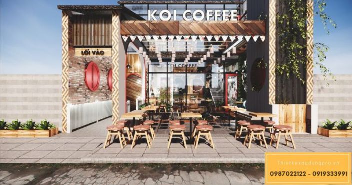 Về phối cảnh của thiết kế quán cafe nhìn từ trên mái của quán xuống tất cả mọi thứ sự thoáng mát kết hợp với không gian cây xanh làm chúng ta liên tưởng đến khu thiết kế của những khu resort, cùng với sự kết hợp sắc chất liệu thiết kế quán khá đơn giản đều là những thứ gần gũi mà hằng ngày chúng ta vẫn thấy trong cuộc sống thường ngày chính điều bất ngờ đã tạo nên sự thân quen đối với khách hàng khi họ đến đây trong lần đầu tiên.