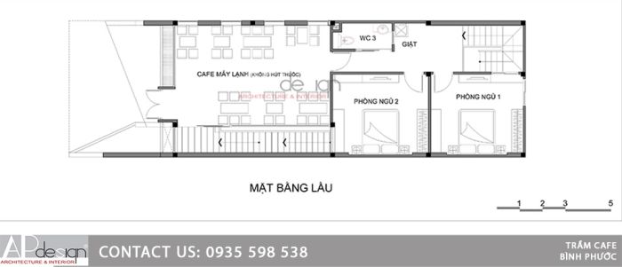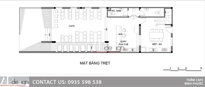 Thiết kế quán cafe mặt tiền 5m