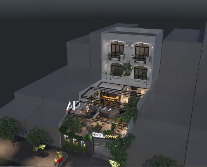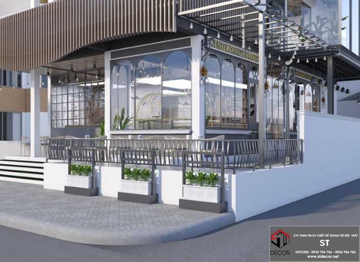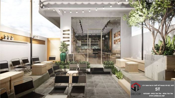 Phối cảnh thiết kế quán cafe mặt tiền 6m