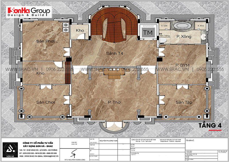 2. Bản vẽ mặt bằng công năng biệt thự cổ điển châu Âu 4 tầng