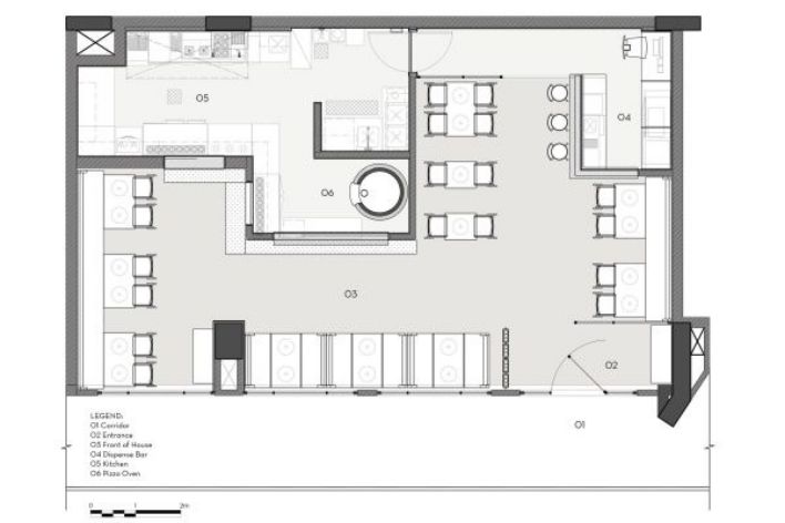 Theo yêu cầu của chủ kinh doanh, với diện tích 100m2 sẽ có công năng bao gồm khu vực bếp, khu vực quầy phục vụ, khu vực danh cho khách hàng. Trong mặt bằng thiết kế quán cafe này, các kiến trúc sư đã có sự tính toán không gian của từng khu vực sau khi khảo sát thự tế. Quán được thiết kế dọc theo sảnh để khách hàng dễ dàng đi lại và quan sát được không gian bên trong quán. Từ sảnh chính đi vào là cửa chính với phần lối đi được thiết kế rộng và thoải mái dành cho khách hàng.