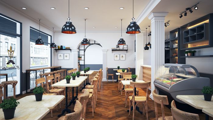 3. Mẫu phối cảnh quán cafe phong cách Pháp cổ điển