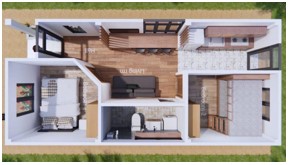 Mẫu thiết kế nhà ống 1 tầng diện tích 40m2 2 phòng ngủ :