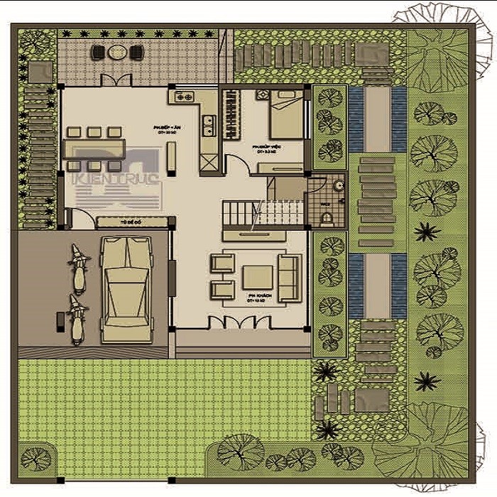 Có thể thấy hiện nay một xu thế đang được coi là trào lưu đó là mang không gian sống xanh đến cho căn biệt thự. Đây là ý tưởng không tồi được rất nhiều chủ đầu tư, kiến trúc sư áp dụng cho các công trình của mình. Đặc biệt là ở những khu vực thành phố lớn đông đúc, tấp nập, khói bụi nhiều nên một không gian sống xanh đang là điều mà các biệt thự hướng đến. Ở mẫu nhà biệt thự 300m2 này xu hướng mang cây xanh đến căn biệt thự không chỉ ở phòng khách, phần lan can mà đặc biệt là ở khu vực sân thượng hay toàn bộ những không gian khác của ngôi nhà. Tại sân thượng hay khu vực lan can bạn có thể lựa chọn một không gian hoàn toàn thuộc về thiên nhiên. Sau cuối ngày làm việc căng thẳng, mệt mỏi bạn có thể dành thời gian rảnh để chăm sóc cây cảnh, trồng rau sạch, bạn có thể đặt một bàn trà nhỏ xinh trên sân thượng để thư giãn vào những buổi tối đẹp trời. Chúng tôi tin rằng đó sẽ là một ý tưởng rất hay đó.