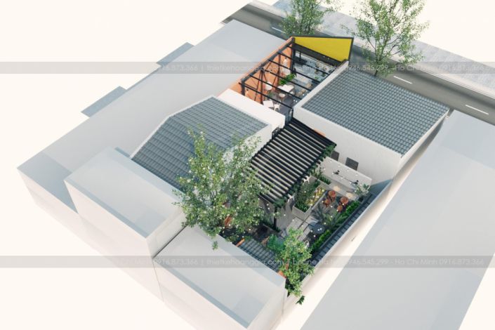 2. Phối cảnh thiết kế 3D quán cafe diện tích 100m2