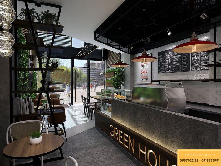 5. Mẫu thiết kế quán cafe 100m2 phong cách hiện đại