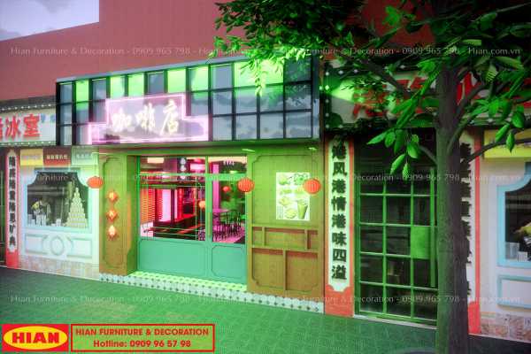 2.1 Thiết kế mặt tiền quán cafe phong cách Hongkong