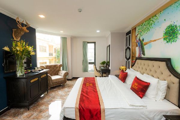 Trong không gian này kiến trúc sư sử dụng lối kiến trúc tân cổ điển với chiếc đêm có phần đầu bọc da, đồ nội thất với sơn gỗ nâu trầm, nội thất bọc da cổ điển. Phần tường của khách sạn sơn xanh than ấn tượng hay vẽ trang trí bắt mắt. Không gian này khá mở với cửa sổ kính lớn để lấy ánh sáng vào bên trong.