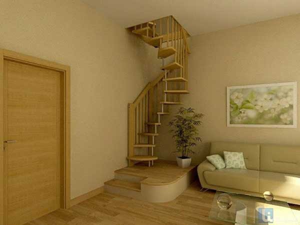 Nếu không gian sống của bạn hoàn toàn sử dụng chất liệu gỗ thì đây là mẫu cầu thang cho nhà nhỏ hẹp mà bạn không nên bỏ qua. Vị trí cầu thang đặt tại góc nhà, gần với phòng khách tạo nên điểm nhấn cho không gian. Thiết kế cầu thang độc đáo hình xoắn ốc linh hoạt và nghệ thuật càng khiến cho không gian trở nên nổi bật. Toàn bộ cầu thang từ tay vịn cho đến bậc đều sử dụng gỗ tạo nên sự đồng điệu cho thiết kế của ngôi nhà.