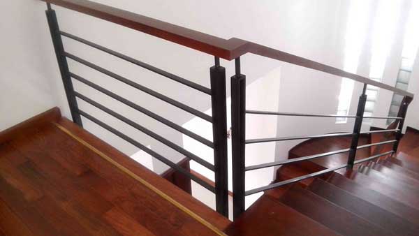 Cầu thang inox tay vịn nhựa sơn 1 màu giả gỗ kết hợp cùng cầu thang ốp gỗ đem lại không gian sang trọng, lịch sự cho ngôi nhà của bạn. Hơn thế nữa chúng còn tạo cảm giác chắc chắn khi sử dụng, không hề có sự rung lắc khi tác động lực lên lan cầu thang cũng như tay vịn. Màu sơn tay vịn gần giông với màu ốp bậc cầu thang tạo nên sự đồng nhất về màu sắc trong không gian của bạn.