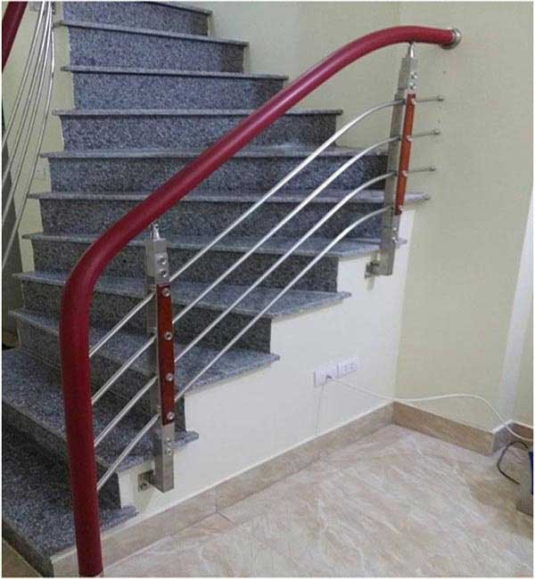 Nếu ưa thích màu đỏ của các loại gỗ như đinh, lim … hãy thử với mẫu cầu thang này nhé. Sự kế hợp với bậc ốp đá granite cũng là một ý tưởng khá ổn và được áp dụng trong nhiều công trình đặc biệt là công trình nhà ở hay các căn nhà có không gian hẹp. Những khúc cong hay phần uốn lượn của cầu thang đều không làm khó được với phần tay vịn nhựa bởi tính chất dẻo, dễ uốn cong hay định hình của nhựa. Cầu thang inox tay vịn nhựa là sự lựa chọn hoàn hảo cho những không gian hẹp, độ dốc cầu thang lớn và những khúc uốn khó, giúp tiết kiệm được chi phí hi công, lắp đặt cũng như thời gian thi công.