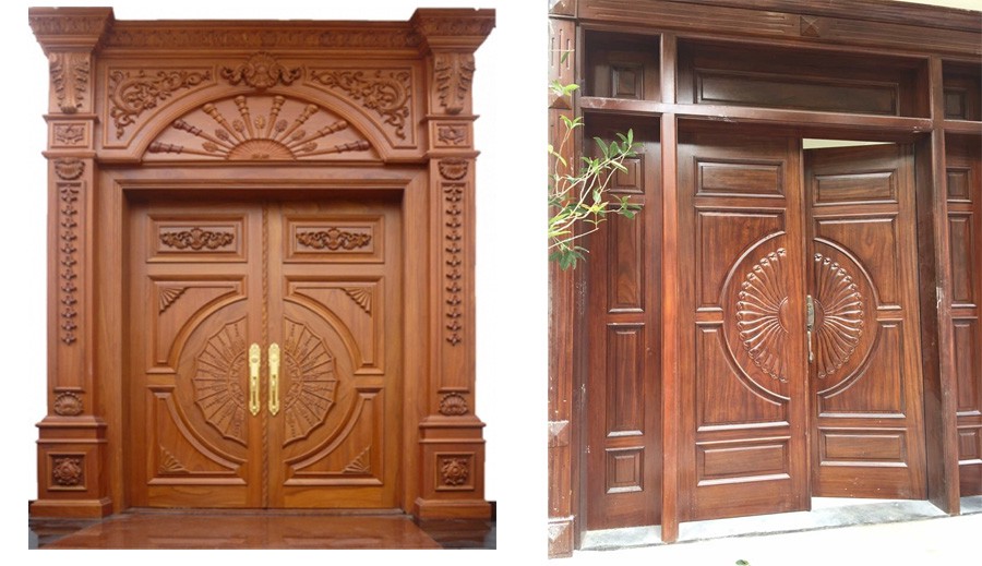- Thứ 2 là mẫu cửa gỗ căm xe mang phong cách cổ điển. Nếu như mẫu cửa 2 cánh hiện đại mang đến sự thanh thoát, nhẹ nhàng thì mẫu cửa 2 cánh gỗ căm xe theo phong cách cổ điển lại chú trọng đến những đường nét, chạm khắc tỉ mỉ. Mang đến những bộ cánh cửa tạo nên sự sang trọng và khẳng định đẳng cấp cho gia chủ.