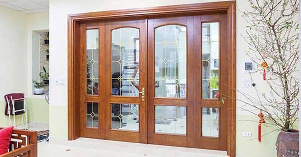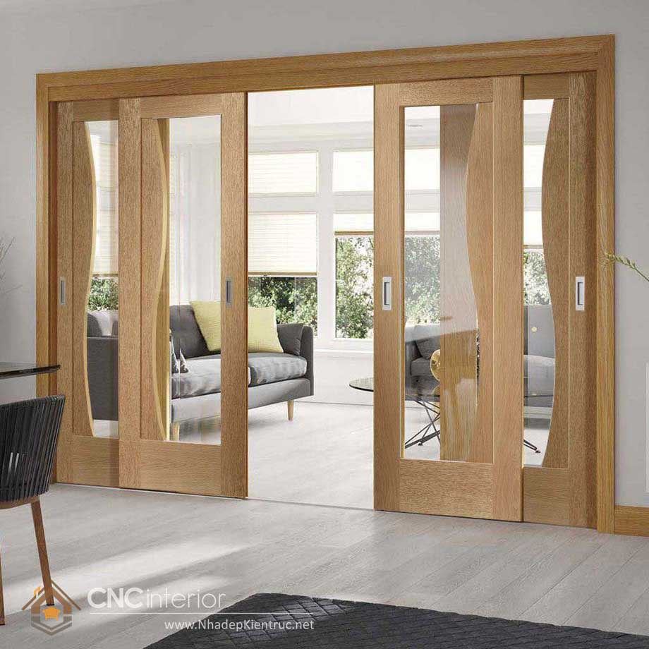 - Cửa kính khung gỗ dành cho phòng khách