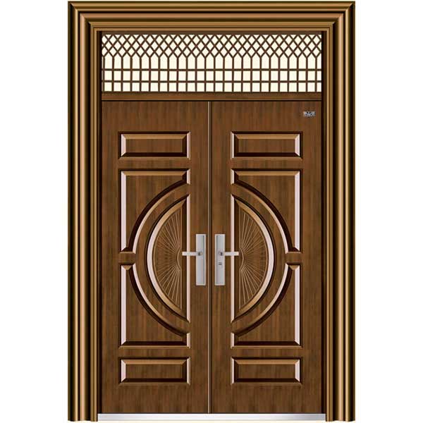 Mẫu cửa sắt 2 cánh giả gỗ thứ hai được nhiều gia chủ quan tâm có thiết kế tương tự với mẫu bên trên nhưng khung sắt được sơn màu gỗ. Với cửa này cũng sẽ được sử dụng rất nhiều trong kiến trúc hiện đại, và có thể sử dụng trong kiến trúc tân cổ điển hiện nay trong cửa chính, cửa thông phòng hay cửa thông ra ban công.