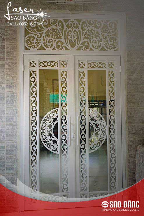 Đến với mẫu này chúng ta có thể sử dụng cho phòng giám đốc hay cửa ra vào của ngôi nhà phố. Mẫu thiết kế cửa này chúng ta thường bắt gặp ở các căn hộ nhà ống có mặt tiền nhỏ, mục đích khi sử dụng các ô cửa kính nhỏ là để chống trộm bởi khi có trộm neus chúng làm vỡ kính thì cũng không thể chui qua vào nhà được. Mẫu cửa sắt kính cường lực này khi kết hợp màu sơn trắng tạo nên không gian sang và rộng hơn cho ngôi nhà. Ngoài ra chúng ta còn có thể sử dụng kính đen hoặc kính mờ nếu như không thích kính trong.