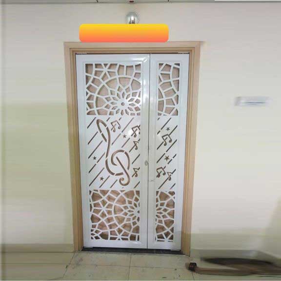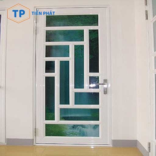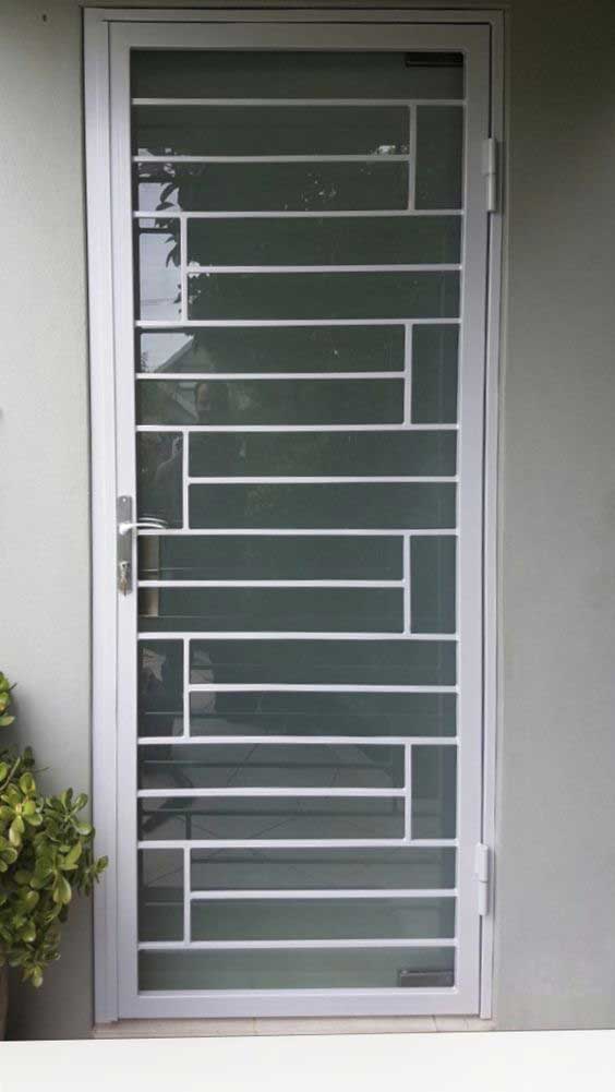 Đây là mẫu cửa sắt khung kính nhưng mẫu cửa 2 cánh này được khác nhiều người yêu thích bởi lẽ khi sử dụng rât thuận tiện cho người tiêu dùng. Mẫu cửa sắt có nối thiết kế khá ấn tượng khi kết hợp kính cường lực dán hình hoa văn văn sắp xếp khéo léo các khung sắt tạo nên nhiều ô với kích thước khác nhau nằm ngang dọc theo nhiều chiều hướng. Thoạt nhìn qua chúng ta tưởng đó như một bức tranh nghệ thuật nhưng không phải bởi đây chỉ là các thiết kế của các nhà gia công cho một cánh cửa.