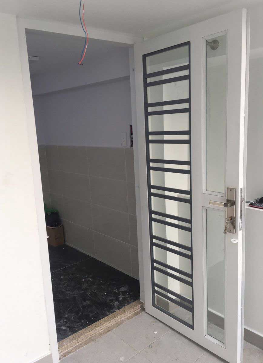 Mẫu cửa sắt sân thượng là mẫu cửa sắt 1 cánh chúng tôi thiết kế dạng mở có thể quay kết hợp giữa khung sắt và kính cường lực. Đến với mẫu cửa này các bạn nhìn thấy ngay lối thiết kế khá ấn tượng với các ô thoáng phía trên kết hợp màu trắng sơn mang phong cách hiện đại cho ngôi nhà.