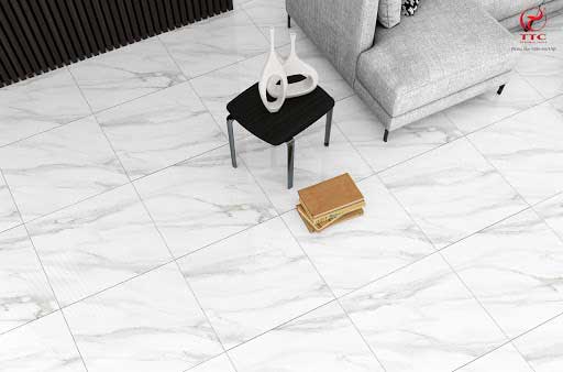 Mẫu gạch lát nền giả đá đẹp màu trắng được nhắc đến đầu tiên bởi sự phổ biến trên thị trường hiện nay và được rất nhiều, rất nhiều gia chủ lựa chọn cho công trình nhà mình, đặc biệt là không gian phòng khách, không gian bếp, bàn ăn và có thể là nhà vệ sinh của mình. Mẫu gạch lát nền giả đá đẹp màu trắng này mang đến cho không gian nhà gia chủ một vẻ đẹp sự hiện đại, tiện nghi với sự sang trọng nhất định. Khi đặt trong không gian kể trên, kết hợp với ánh sáng mặt trời vào buổi sáng càng khiến không gian trở nên bừng sáng, rực rỡ.