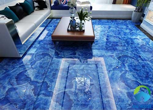 Mẫu gạch lát nền giả đá đẹp màu xanh dương mang đến không gian như hoà mình vào dòng nước mát xanh. Công trình sử dụng mẫu gạch lát nền đẹp này sẽn có cảm nhận như đang ở bãi biển xanh, cát trắng vậy.