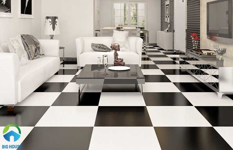 Mẫu gạch này thích hợp với những ai yêu thích không gian tối giản nhưng lại không đơn điệu. Mẫu gạch lát nền đen điểm trắng mang đến cho ngôi nhà tính thẩm mĩ cao hơ nữa bề mặt bóng kính công nghệ cao giúp cho việc đi lại không bị trơn trượt và quá trình vệ sinh cũng dễ dàng hơn.
