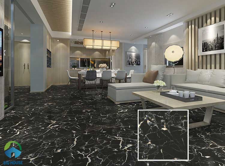 Một mẫu gạch lát nền màu đen đẹp đã và đang thống lĩnh thị trường gạch lát nền đó là mẫu gạch giả đá màu đen với vân đá màu cẩm thạch. Mẫu gạch này tưởng chừng thích hợp với nhiều không gian nhưng thực chất nó thích hợp với những ngôi nhà có không gian rộng. Mẫu gạch này mang đến cho căn phòng của bạn nét hiện đại, sang trọng, đẳng cấp mà không mẫu gạch nào làm được.