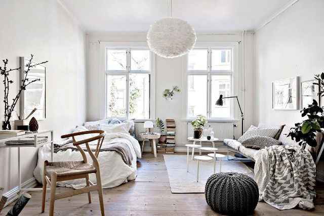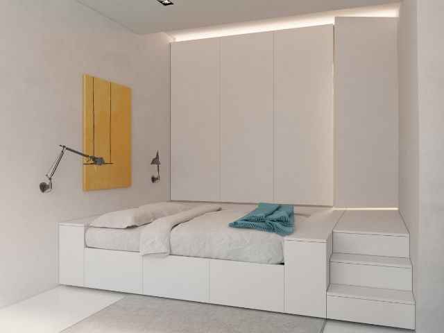Một căn phòng ngủ khi nhìn qua bạn sẽ cảm thấy bị rối mắt bởi sự xuất hiện của quá nhiều các món đồ đạc như giường ngủ, bàn làm việc, bàn trà, sofa… Tuy nhiên với cách bài trí và sắp đặt khoa học, nó vân mang đến sự thoải mái, tiện lợi cho chủ nhân trong căn phòng. Tường được sơn màu trắng cùng với ánh sáng tự nhiên tận dụng từ 2 chiếc cửa sổ nhỏ tạo nên cảm giác sáng sủa và rộng rãi cho không gian. Mẫu thiết kế nội thất phong ngủ màu trắng này đặc biệt thích hợp với những căn hộ có diện tích hợp hoặc nhà ống ở phố.