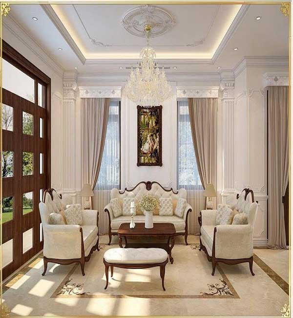 Vẫn là phong cách tân cổ điển nhưng có lẽ chúng ta không ai giám khẳng định rằng mẫu thiết kế nào đẹp hơn vì nó “mười phân vẹn mười”. Mỗi phòng khách lại có một vẻ đẹp riêng mặc dù cùng một phong cách. Ở mẫu thiết kế này chúng ta thấy có sự kết hợp hài hòa bởi cách bố trí, sắp xếp. Nội thất trong căn phòng được lựa chọn tinh tế, sắc sảo. Có lẽ khi sở hữu căn phòng này khi đi đâu trở về nhà có lẽ là nơi bình an, êm đềm nhất.