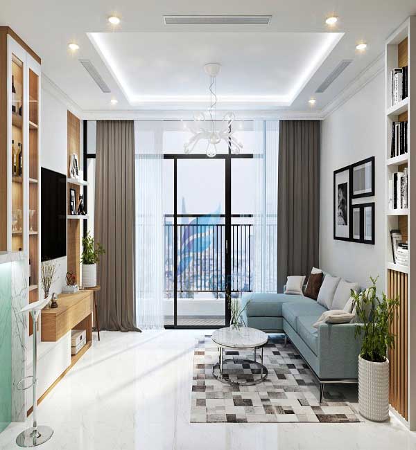 Chắc chắn chúng ta sẽ cảm thấy mãn nhãn khi chiêm ngưỡng vẻ đẹp của phòng khách căn chung cư này. Mọi chi tiết, góc cạnh được thiết kế vô cùng tinh tế, đầy ảo diệu. Từng lọ hoa, bức tranh, cây đèn bàn, bộ bàn ghế salon trắng sữa ... đã tôn thêm vẻ đẹp quý phái của căn phòng khách này. Sang trọng, lịch sự và rất thu hút khi chiêm ngưỡng phòng khách này đúng không nào. Nếu chót yêu thích xu hướng này hãy lưu lại ngay cho gia đình mình bạn nhé.