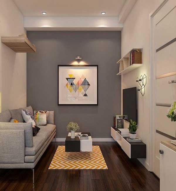 Nếu quý khách thích một phong cách trẻ trung, năng động phá cách thì có thể lựa chọn mẫu phòng khách vô cùng đáng yêu này. Với một chiếc ghế sang trọng, êm đềm có 4 chân để bạn có thể dễ dàng trong việc vệ sinh. Một chiếc bàn nhỏ xinh, ti vi gắn trên tường... Tất cả những yếu tố trên đã góp phần mang đến một không gian nhỏ nhưng đẹp. Mẫu phòng khách này khá lịch sự và hấp dẫn, tông màu trầm tính luôn lên ngôi cho các không gian thêm phần sang trọng và tạo điểm nhấn chiều sâu cho ngôi nhà.