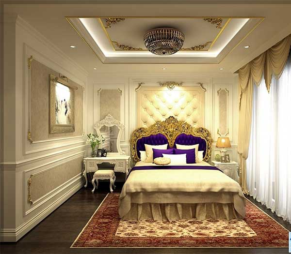 Không gian phòng ngủ mang phong cách quý tộc này hoàn hảo cho những khu chung cư cao cấp cũng như những người yêu thích phong cách cổ điển. Giường ngủ được thiết kế chi tiết, màu sắc độc đáo kết hợp với kiến trúc tỉ mỉ tạo nên một không gian phòng ngủ đẳng cấp. Bạn có thể trang trí thêm bằng thảm trải sàn để làm nổi bật hơn phong cách của căn phòng. Chú ý sử dụng ánh sáng vàng để mang lại cảm giác ấm cúng cho không gian.