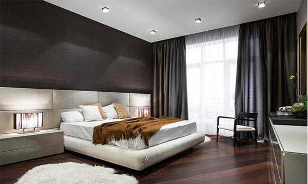 Nếu bạn không thích những tone màu sáng. Bạn hoàn toàn có thể chọn những tone màu tối. Những mẫu sàn gỗ cho phòng ngủ có tone màu tối có rất nhiều ưu điểm. Màu tối thì ít để lại vết xước và vết bẩn hơn. Bạn sẽ dễ dàng hơn trong công việc vệ sinh. Nếu bạn nghĩ rằng, sàn màu tối sẽ rất khó kết hợp với những đồ nội thất khác hoặc gây khó khăn trong việc trang trí. Thì đó hoàn toàn là một suy nghĩ sai lầm. Sàn gỗ màu tối thực ra không hề làm khó chúng ta trong việc trang trí phòng. Nó sẽ hết sức đơn giản nếu bạn biết áp dụng những gam màu sáng cho tường, trần nhà hay đồ nội thất.