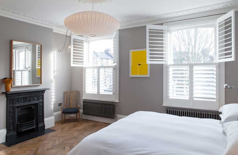 Bên cạnh màu sáng của tường để làm nền. Bạn có thể kết hợp mẫu nội thất phòng ngủ sàn gỗ đậm màu của mình với một màu sắc khác. Để tạo nên sự mới mẻ cho không gian nghỉ ngơi của mình, ví dụ như là màu xám xanh.