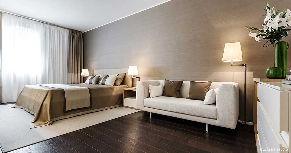 - Thứ tư là về màu sắc, bạn nên chọn sàn gỗ có tone màu trung tính, nhẹ nhàng và hài hoà. Không nên chọn những tone màu quá cá tính và nổi bật. Tuỳ theo diện tích của phòng ngủ và lượng ánh sáng tự nhiên mà bạn có thể chọn màu đậm nhạt theo sở thích của mình. Những ga màu như nâu hạt dẻ, sáp ong hay nâu cánh gián sẽ rất hợp với phòng ngủ của bạn.