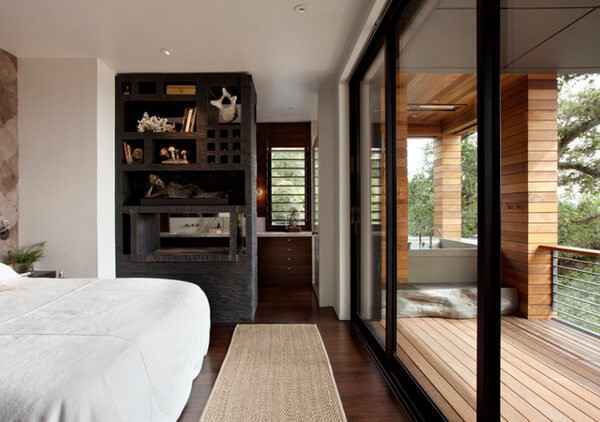 Mẫu thiết kế phong ngủ phong cách hiện đại chú trọng đến việc tối ưu hóa không gian sử dụng bằng cách tạo thêm không gian mở với sự xuất hiện của ban công, hoặc cửa kính bản to để tận dụng tối đa ánh sáng tự nhiên từ bên ngoài. Khi cửa sổ mở ra, bạn được hòa mình vào với nắng và gió tự nhiên sẽ mang đến sự thư thái, tĩnh tại. Ánh sáng và những cơn gió cũng góp phần giúp cho căn phòng ngủ luôn thoáng đãng và thoải mái.