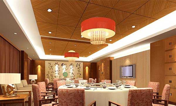 Một phòng ăn nhà hàng thiết kế đậm phong cách nhật bản, trần thạch cao kết hợp gỗ có thể dễ dàng kết hợp với hệ thống đèn trang trí và các phụ kiện khác sẽ làm công trình nhà hàng trở nên rực rỡ hay lung linh, huyền ảo khiến khách hàng cảm thấy choáng ngợp trong không gian xa hoa lộng lẫy.
