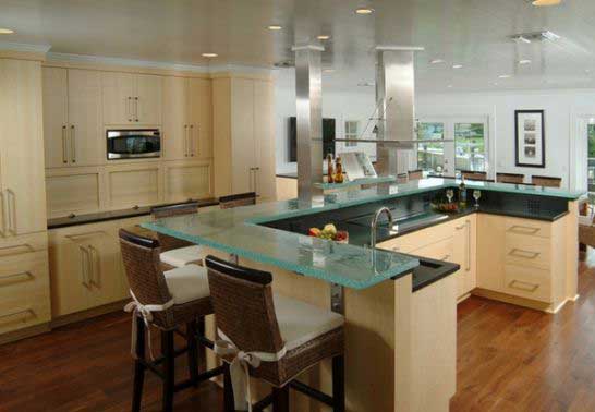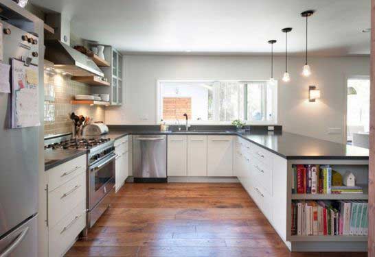 - Hình chữ u có thể tận dụng làm quầy bar.
