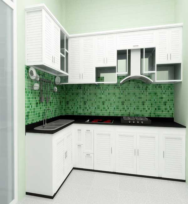 Được thiết kế bằng hình dáng chữ L nhỏ gọn, với chất liệu nhôm kính tiết kiệm chi phí một cách tối đa nhất. Mặc dù là tủ bếp mini nhỏ nhưng chúng ta có thể thấy ở mẫu tủ bếp này vẫn hội tụ đầy đủ công năng sử dụng với các ô chứa đồ, bếp ga, bồn rửa...
