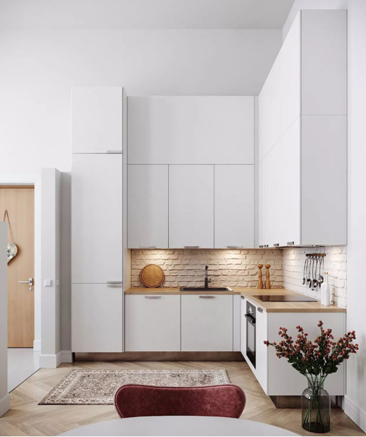 Với diện tích hẹp của một căn hộ chung cư thì việc đặt mẫu tủ bếp này là hoàn toàn hợp lí. Không cần quá lơn về diện tích, màu sắc không cần phối 2,3 loại màu. Chỉ với màu trắng diện tích vỏn vẹn 2m nhưng vẫn đáp ứng đầy đủ công năng khi sử dụng mà vẫn khoác trên mình vẻ đẹp của sự tự nhiên, hiện đại.