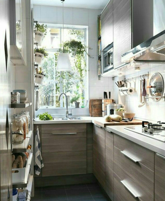 Hiện nay, trên thị trường có rất nhiều phụ kiện tủ bếp, nội thất thông minh rất thích hợp cho các căn phòng bếp nhỏ, vì thế hãy sử dụng phụ kiện nội thất loại này. Bạn có thể chọn loại phụ kiện tủ bếp như: kệ chén dĩa, kệ gia vị của Eurokits hoặc Hafele, sử dụng những nội thất thông minh như bàn ăn xếp gọn,….