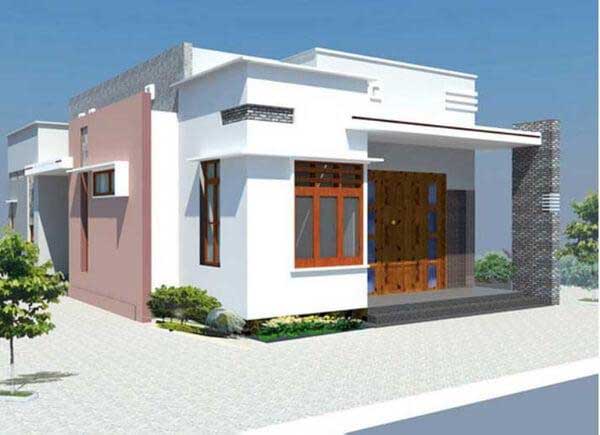 Kiểu 1: Mẫu nhà ống 1 tầng với thiết kế truyền thống kết hợp với kiến trúc mái bằng.
