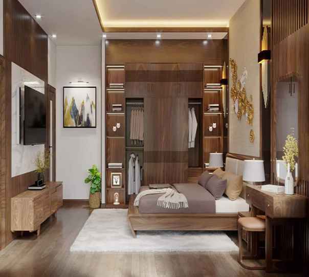 2.2. Thiết kế nội thất phòng ngủ gỗ óc chó tự nhiên cao cấp
